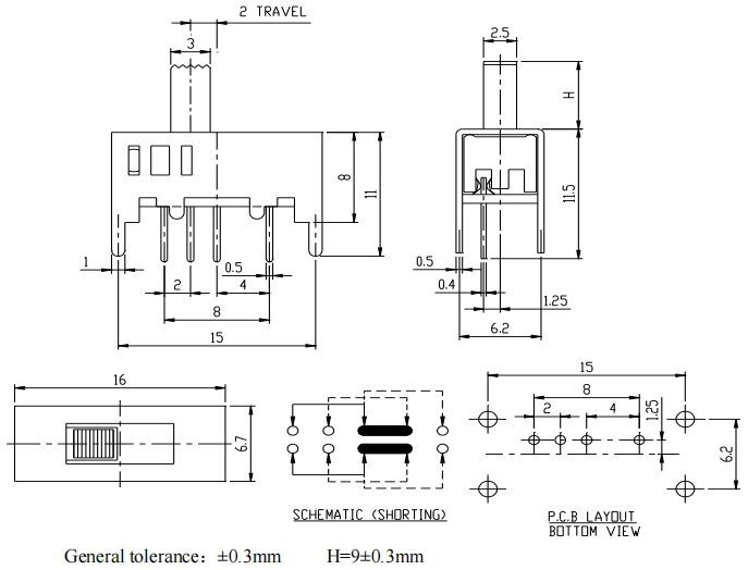 No IP RatingPrzełączniki suwakowe jednorzędowe, 3-pozycyjne