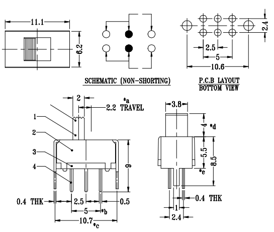 3-pinowy przełącznik suwakowy Dpdt Mini ElectronicsKolejny: