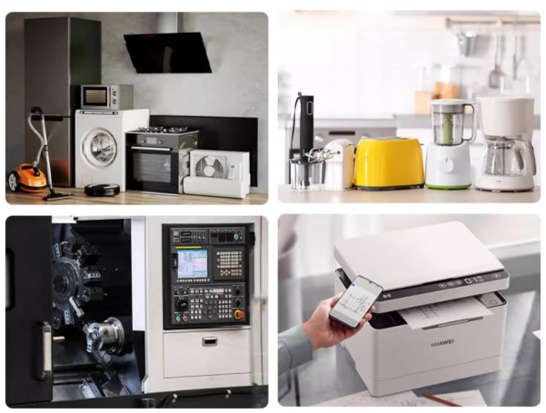 instrumenty/mierniki, różnego rodzaju zabawki elektryczne, faksy, sprzęt audio, sprzęt medyczny, urządzenia kosmetyczne i inne produkty elektroniczne.