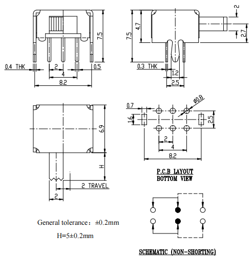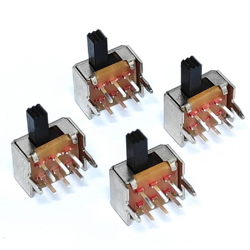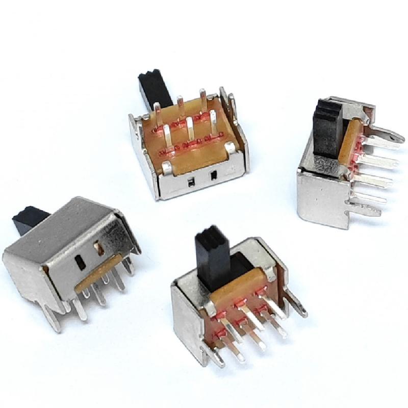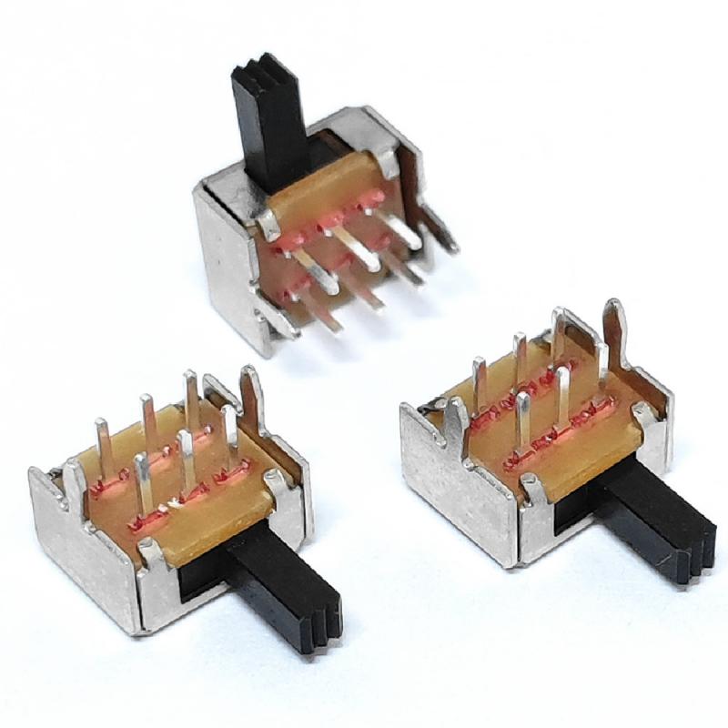 Przełącznik suwakowy ON-ON DPDT to dwubiegunowy, dwupołożeniowy przełącznik suwakowy, który może jednocześnie sterować dwoma niezależnymi obwodami i przełączać między dwoma stabilnymi stanami przewodzenia. Nadaje się do różnych zastosowań, takich jak obrót silnika do przodu lub do tyłu oraz przesyłanie sygnału.