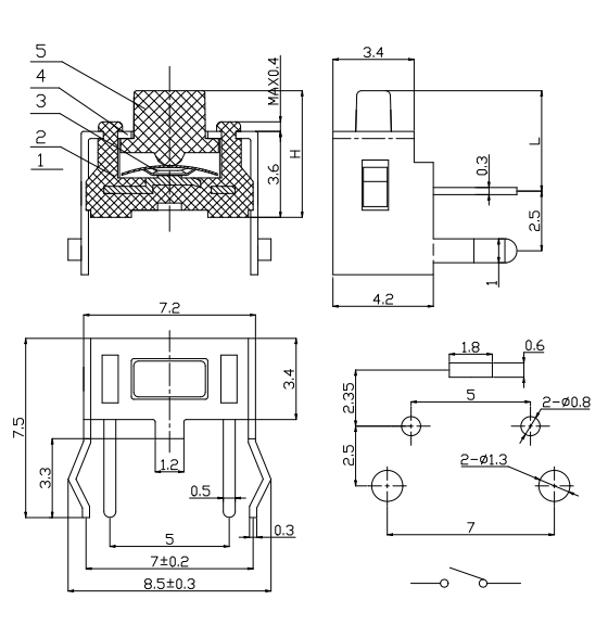 Miniaturowy przełącznik dotykowy 7,2 mm x 3,4 mm z uchwytem